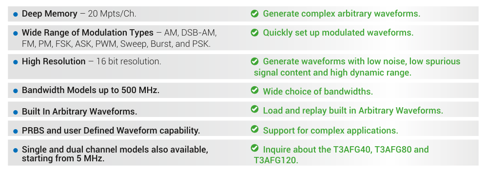 Main Features and Functions of the T3AFG200, T3AFG350 & T3AFG500